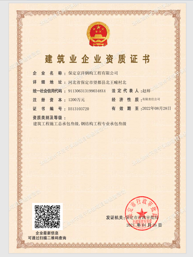 公司主要致力于鋼結構設計、制作、安裝、銷售為一體的鋼結構施工專業企業。成立于2010年,注冊資金1200萬元。公司擁有國內先進的數控自動焊接設備、H鋼結構生產線、CZ鋼快速切換一體機、自動剪切壓板機等,優(yōu)良的制作加工車間及檢測設備。公司秉承“質量求生存,管理出效益”發(fā)展理念,組建了一支高素質、高水平的團隊以及責任明確、職責清楚、獎罰分明的管理體系。